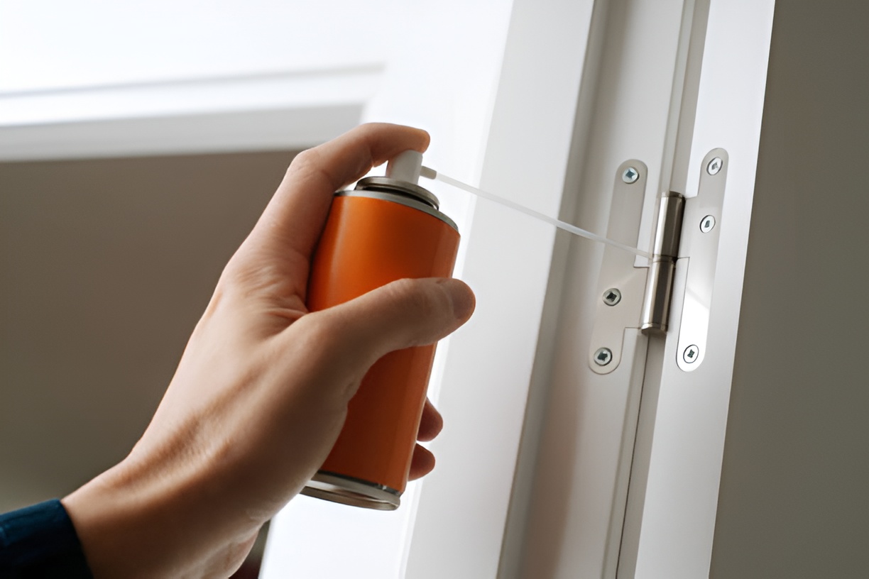 - Lubricate hinges: A bit of WD-40 or silicone spray keeps hinges operating smoothly.